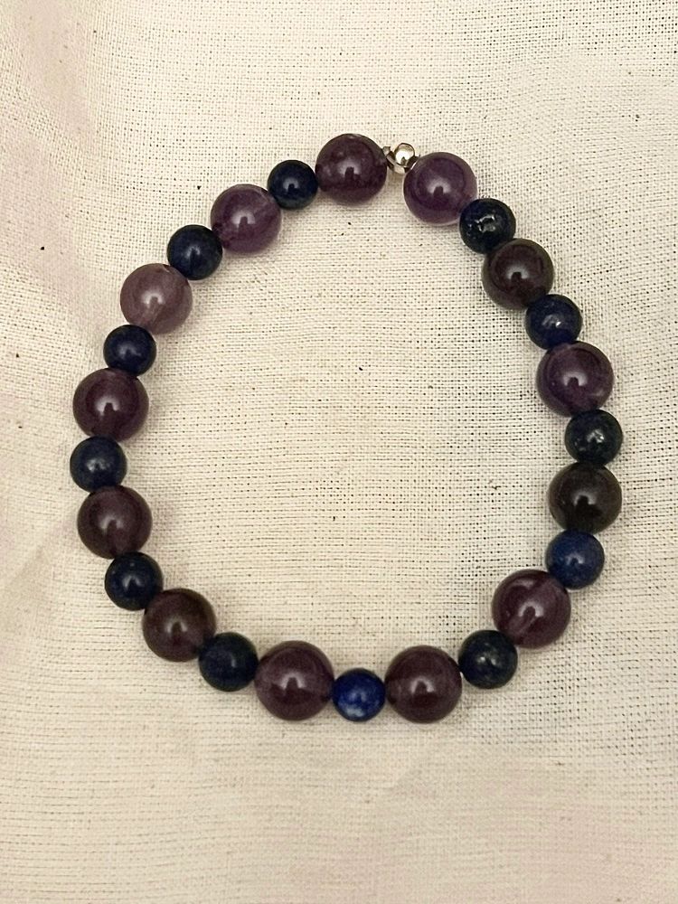 Immerse yourself in the calming and spiritual energies of the Lapis and Amethyst Tranquility Bracelet. This handcrafted piece combines the wisdom of Lapis Lazuli with the soothing qualities of Amethyst, making it a perfect accessory for those seeking balance, peace, and a deeper connection to their inner self.