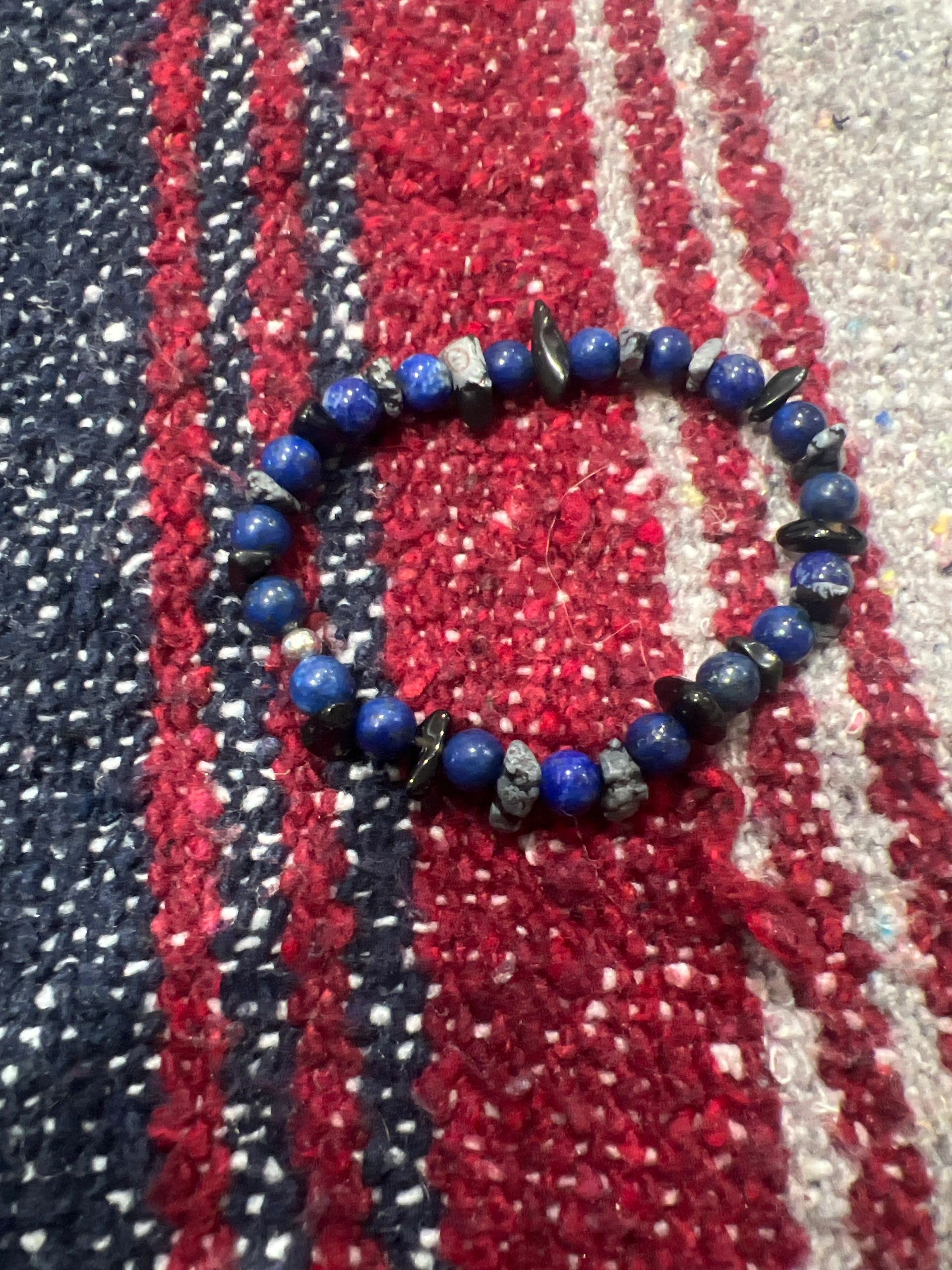 Lapis/Snow Flake Obsidian Protection Bracelet