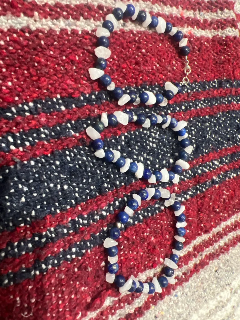 1. Materials: Made with authentic lapis lazuli and white jade beads, strung on a durable, stretchable band for a comfortable fit.