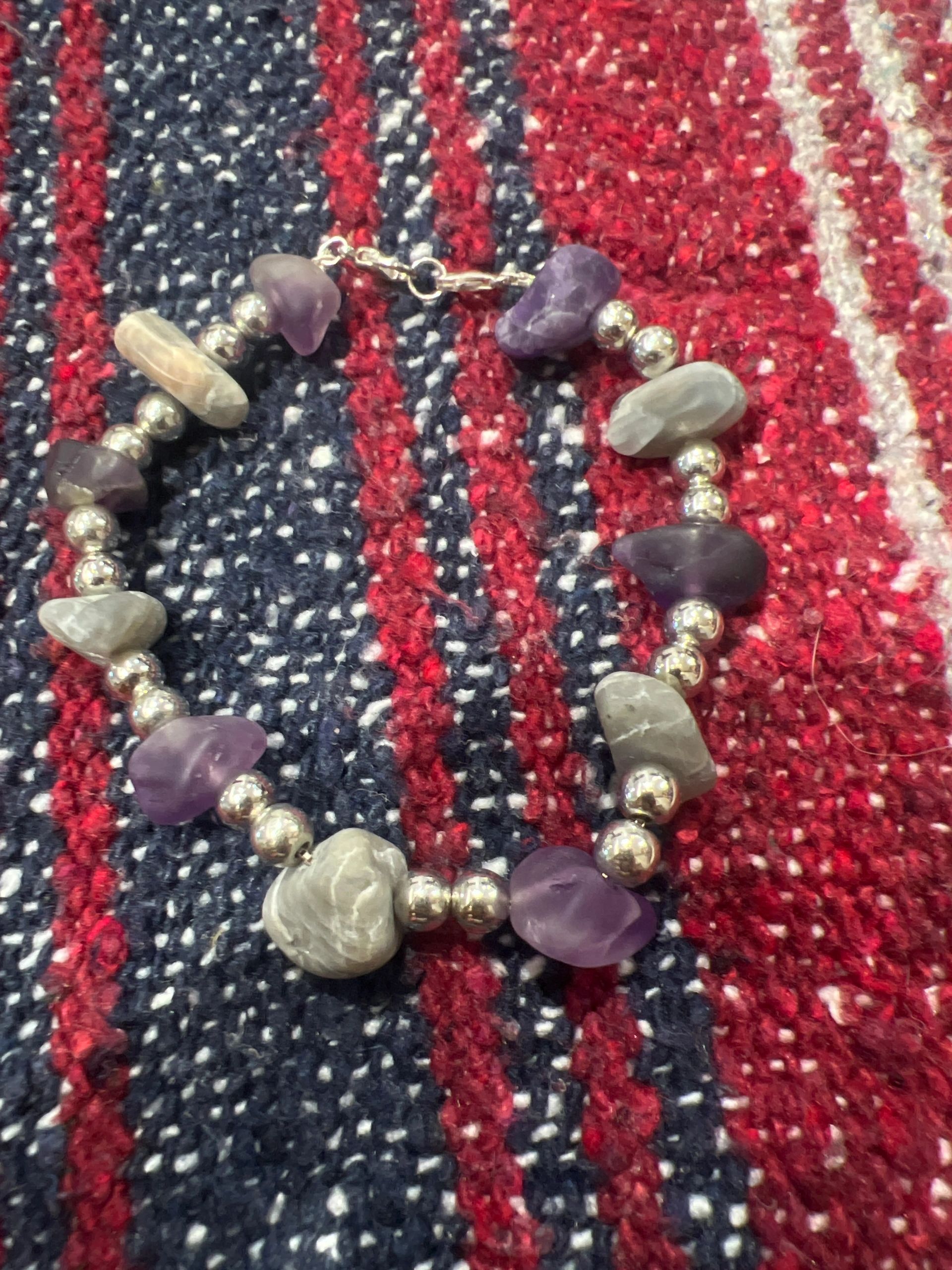 Raw Tumbled Amethyst/Labradorite Bracelet